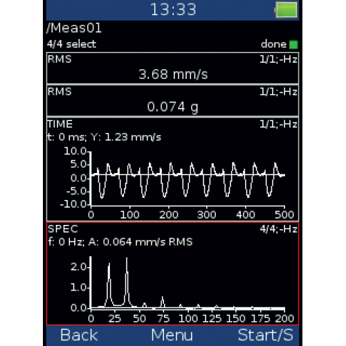 IR temperature sensor (for bearing temperature measurement) and a LED stroboscope/torch are built-in and ready to go by one button press. The A4300 VA3 Pro is designed for one-handed operation. With a weight of just 780g and a battery life of more than 10 hours of continous operation, the unit is suitable for long route measurements.